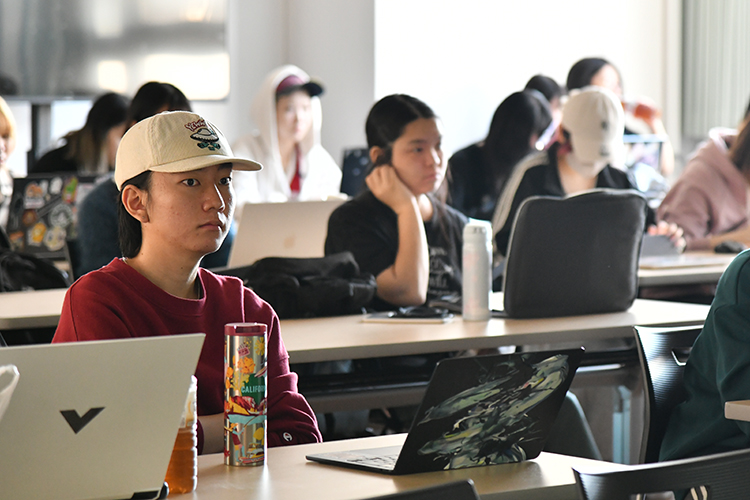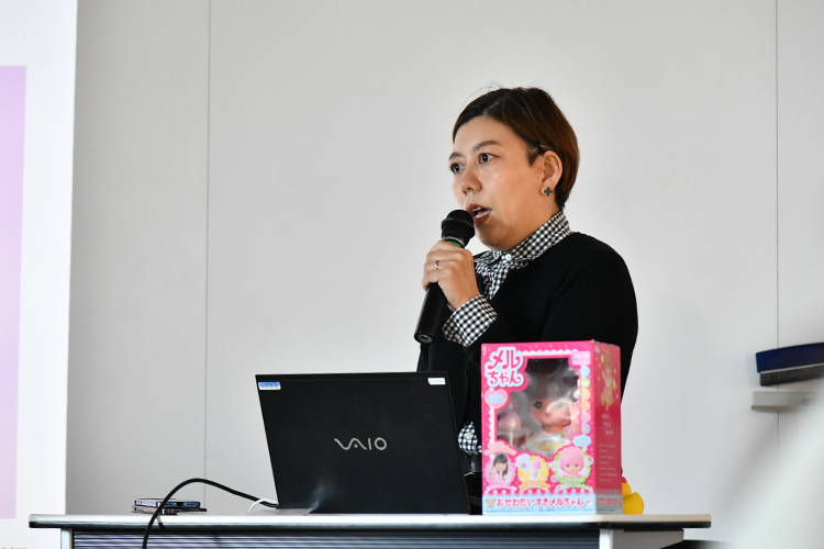 総合イラストレーション科3年生・イラストレーション科2年生の「デザイン概論」の授業では、株式会社パイロットコーポレーション(以下パイロット)玩具事業部 企画・技術グループ担当の土井菜摘子さんをお招きして特別講義を実施しました。聞き手は、本校講師の柿沼先生です。