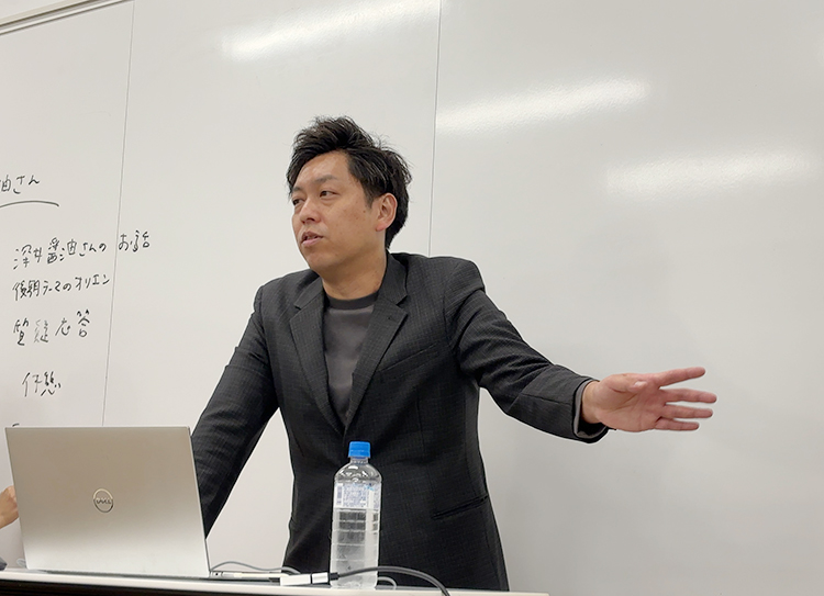 総合デザイン科3年生の情報デザインの授業では、深井醬油株式会社代表取締役、深井隆正さんをゲストにお招きし特別授業を開催しました。