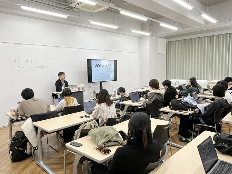総合デザイン科3年生「情報デザイン」の授業では、アートディレクター/グラフィックデザイナーの田中誠さんをお招きし、特別講義を開催しました。