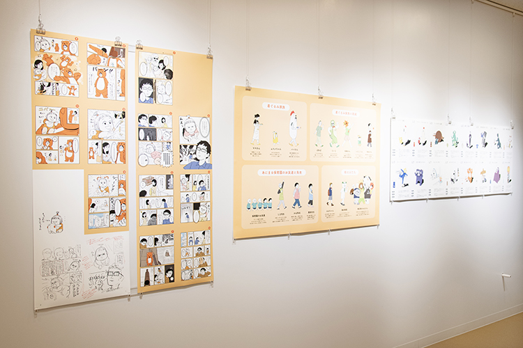 本展示は、家の中の日用品など身近なものから着想を得て制作されている代表作の創作漫画『着ぐるみ家族』を通じて、「一つ一つのものをじっくり観察し、解像度を上げる」という創作の視点をご紹介しております。